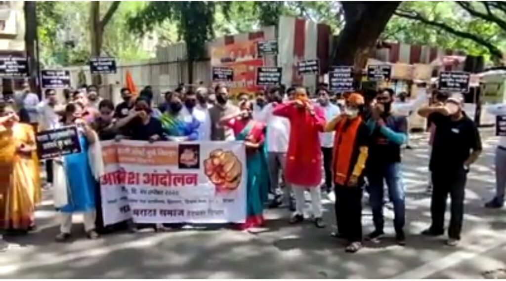 पुणे : बोंबा मारून आक्रोश करत मराठा क्रांती मोर्चाने भारतीय जनता पक्षाचे पुणे शहर कार्यालय समोर आंदोलन केले. यावेळी आमदार, खासदारना आरक्षणाच्या स्थगिती बद्दल देखील जाब विचारण्यात आला.