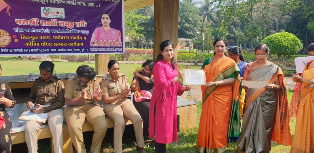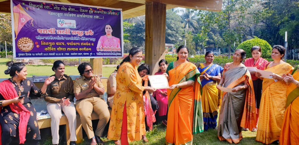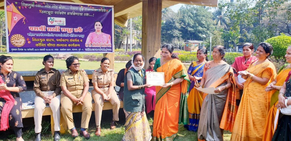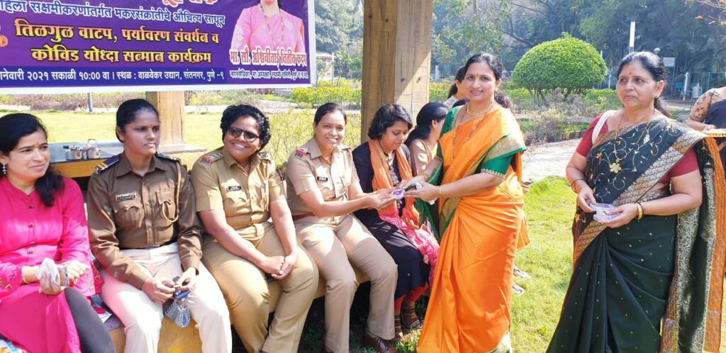 प्रभाग क्रमांक ३५ क येथील वाळवेकर उद्यान येथे संक्रांतीच्या दिवशी म्हणजेच १४ जानेवारी २०२१ रोजी महिला कोविडयोद्धांचा मानसन्मान करण्याचा आणि तुळशीची रोपे लावून वाण लुटण्याचा कार्यक्रम आयोजित केला.