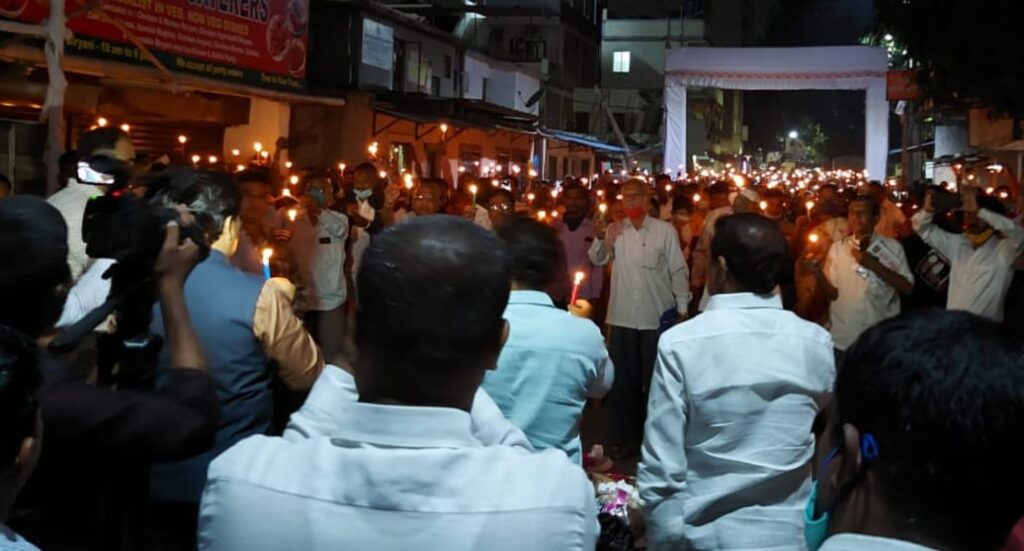 पिंपरी – चिंचवड : जेव्हां मेणबत्त्या शिलगावल्या गेल्या तेव्हां उपस्थित शेकडो जणांच्या भावना अनावर झाल्या.