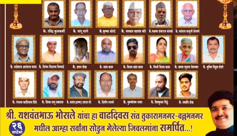 या प्रसंगाचे औचित्य होते, महाराष्ट्रातील कामगार नेते यशवंतभाऊ भोसले यांचा वाढदिवस. पण कोठेही रोषणाई नव्हती की, फटाक्यांची अताषबाजी नव्हती. यशवंतभाऊ भोसले यांनी आपला हा वाढदिवस कारोना काळात संत तुकाराम नगर, महेश नगर, एच ए कॉलनी, हाफकीन कॉलोनी, वल्लभनगर तसेच पिंपरी – चिंचवड परिसरांतील जे लोक दगावले आहेत त्यांना समर्पित केला होता.