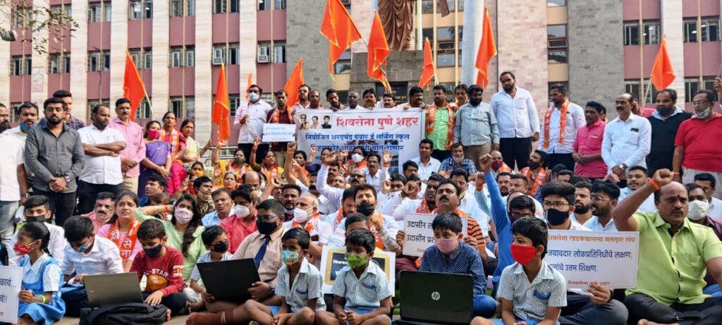 शिवसेनेचे खडकवासला क्षेत्र समन्वयक मनिष जगदाळे म्हणाले, ई-लर्निंग शाळा मुद्दाम बंद ठेऊन सत्ताधारी भाजप बहुजन आणि सामान्य स्थानिक विद्यार्थ्यांचा शिक्षणाचा हक्क हिरावून घेत आहे. मात्र सिंहगड रोड परिसरातील विद्यार्थ्यांवर अन्याय करत भाजप कोणता सूड उगावत आहे? असा सवाल जगदाळे यांनी केला आहे.