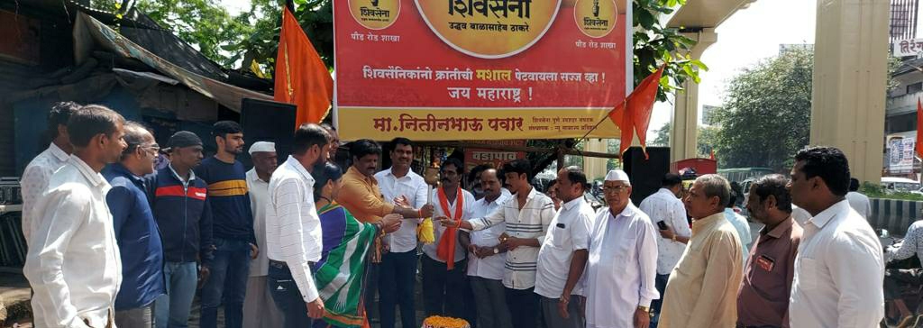 या कार्यक्रमाचे आयोजन शिवसेना शहर संघटक नितीन भाऊ पवार, शुभम कांबळे यांनी केले या कार्यक्रमास प्रमुख उपस्थितीत शिवसेना शहर प्रमुख गजानन थरखुडे ,शहर समन्वयक नितीन शिंदे ,विभाग प्रमुख भारत सुतार , उपविभाग मंदार धुमाळ, नागेश गायकवाड ,किशोर सोनार, प्रविण डोंगरे , लखन तोंडे , सागर तनपुरे , संजय खोंडके, निलेश सोनटक्के, वैभव गायकवाड , संदेश मेहता , अनंत काळे , सौरभ कुसाळकर, तसेच महिला आघाडीच्या पुणे शहर समन्वयक छायाताई भोसले , उपशहर संघटिका ज्योतीताई चांदरे शाखा संघटिका सुनीताताई रानवडे तसेच सर्व शिवसैनिक व पद अधिकारी उपस्थित होते .