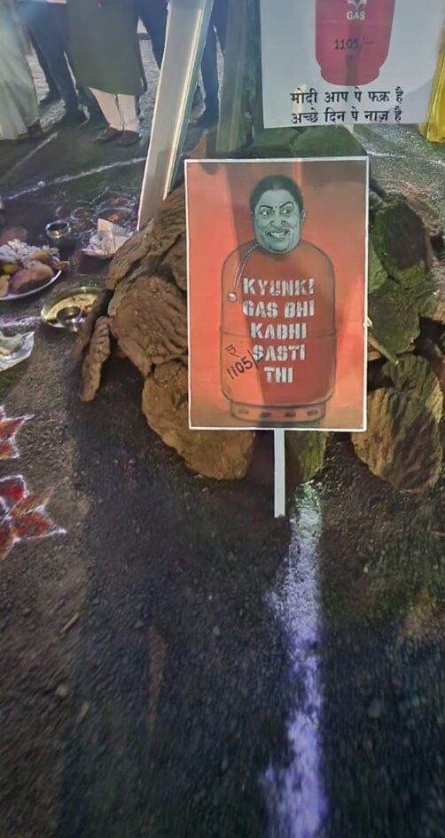 त्यानंतर महागाईच्या नावाने बोंबा ठोकत होलिका दहन करण्यात आले.