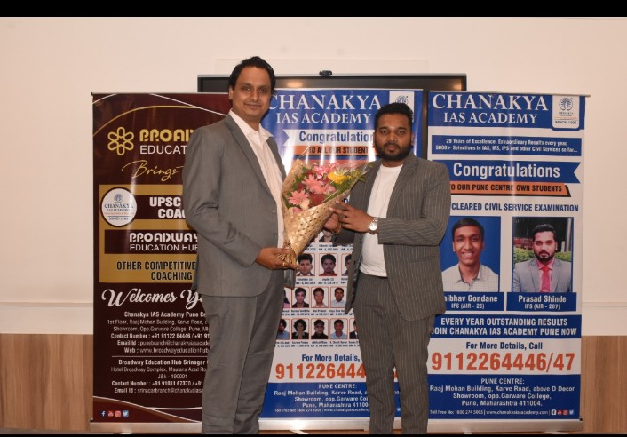 चाणक्य आयएएस अकॅडमी, कर्वे रोड, पुणेच्या वतीने माजी विद्यार्थी तथा नुकतेच इंडियन फॉरेन सर्विसेस मधून भारत सरकारच्या सेवेत मेक्सिको येथे रूजू झालेल्या प्रसाद शिंदे ( AIR 287) यांच्या विशेष व्याख्यानाचे आयोजन करण्यात आले होते. यावेळी चाणक्य आयएएस अकॅडमी पुणे रिजनचे हेड डॉ. अमित मेढेकर, अकॅडमी कोऑर्डिनेटर मेघा देशपांडे, मार्केटिंग मॅनेजर नीलेश बागल आदींसह विद्यार्थी मोठ्या संखेने उपस्थित होते.विद्यार्थ्यांना मार्गदर्शन करताना प्रसाद शिंदे म्हणाले, IAS ची तयारी करतानाचे आयुष्य आणि IFS झाल्यानंतरचे आयुष्य हे पूर्णपणे वेगळे आहे.