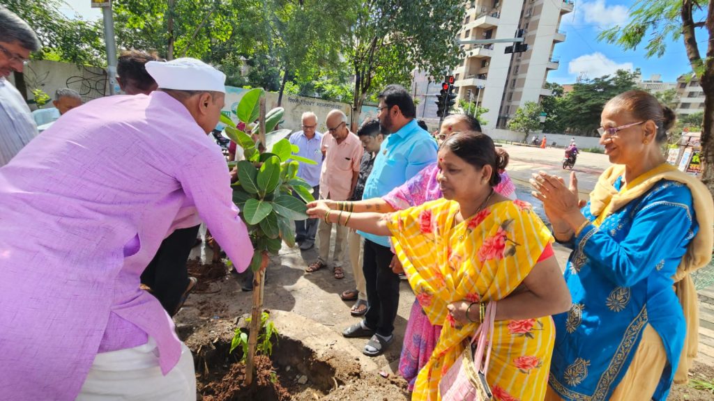 पिंपरी : झाडे लावा, झाडे जगवा संदेश प्रत्यक्षात अमलात आणण्यासाठी आणि प्रदूषण मुक्तीचा संदेश देण्यासाठी संत गाडगेबाबा महाराज जेष्ठ नागरिक संघ व मराठवाडा जनविकास संघ पिंपळे गुरव यांच्या वतीने पेरू, चिकू, वड, सिताफळ, पिंपळ या पर्यावरणपूरक रोपांचे काशीदनगर येथे वृक्षारोपण करण्यात आले.