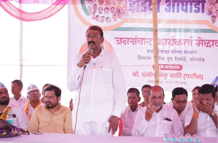 महाविकास आघाडीचे अधिकृत उमेदवार संजोग वाघेरे पाटील यांच्या प्रचारार्थ कळंभ जिल्हापरिषद, कावोळे व गौर कामत विभागातील नागरिकांशी कडाव येथील श्री स्वामी समर्थ मंगल कार्यालय येथे संवाद मेळावा पार पडला. त्या वेळी ते बोलत होते. या मेळाव्याप्रसंगी शेतकरी कामगार पक्षाचे तालुका चिटणीस रामशेठ राणे, माजी समाज कल्याण सभापती नारायण डामसे, तालुका प्रमुख उत्तम कोळंबे, उपजिल्हाप्रमुख नितीन सावंत, काँग्रेसचे कर्जत तालुका अध्यक्ष संजय गवळी, रायगड जिल्हा महिला आघाडीच्या प्रमुख सुवर्ण जोशी, काँग्रेसचे ज्येष्ठ नेते दिनानाथ देशमुख, आपचे डॉ. रियाज पठाण, कळंब ग्रामपंचायत सरपंच प्रमोद कोडलीकर, हुतात्मा पाटील, भाई कोतवाल, पंचायत समितीचे माजी उपसभापती जयवंती हिंदोला, जांमरुखचे सरपंच दत्तूशेठ पिंपरकर, माजी उपसभापती पंढरीनाथ राऊत, काँग्रेसचे ज्येष्ठ नेते दिनानाथ देशमुख, कर्जत कृषी उत्पन्न बाजार समितीचे संचालक तानाजी मते, कर्जत पंचायत समितीचे उपसभापती यशवंत जाधव, माई कोतवाल, हिराजी पाटील, आदिवासी संघटनेचे तालुकाध्यक्ष गोविंद ठोंबरे, महिला तालुका संघटक करुणा बडेकर, माजी पंचायत समिती सदस्य अंजली शिंदे यांच्यासह ग्रामस्थ, ज्येष्ठ नागरिक, महिला वर्ग, युवक-युवती यांच्यासह महाआघाडीचे पदाधिकारी व कार्यकर्ते मोठ्या संखेने उपस्थित होते.