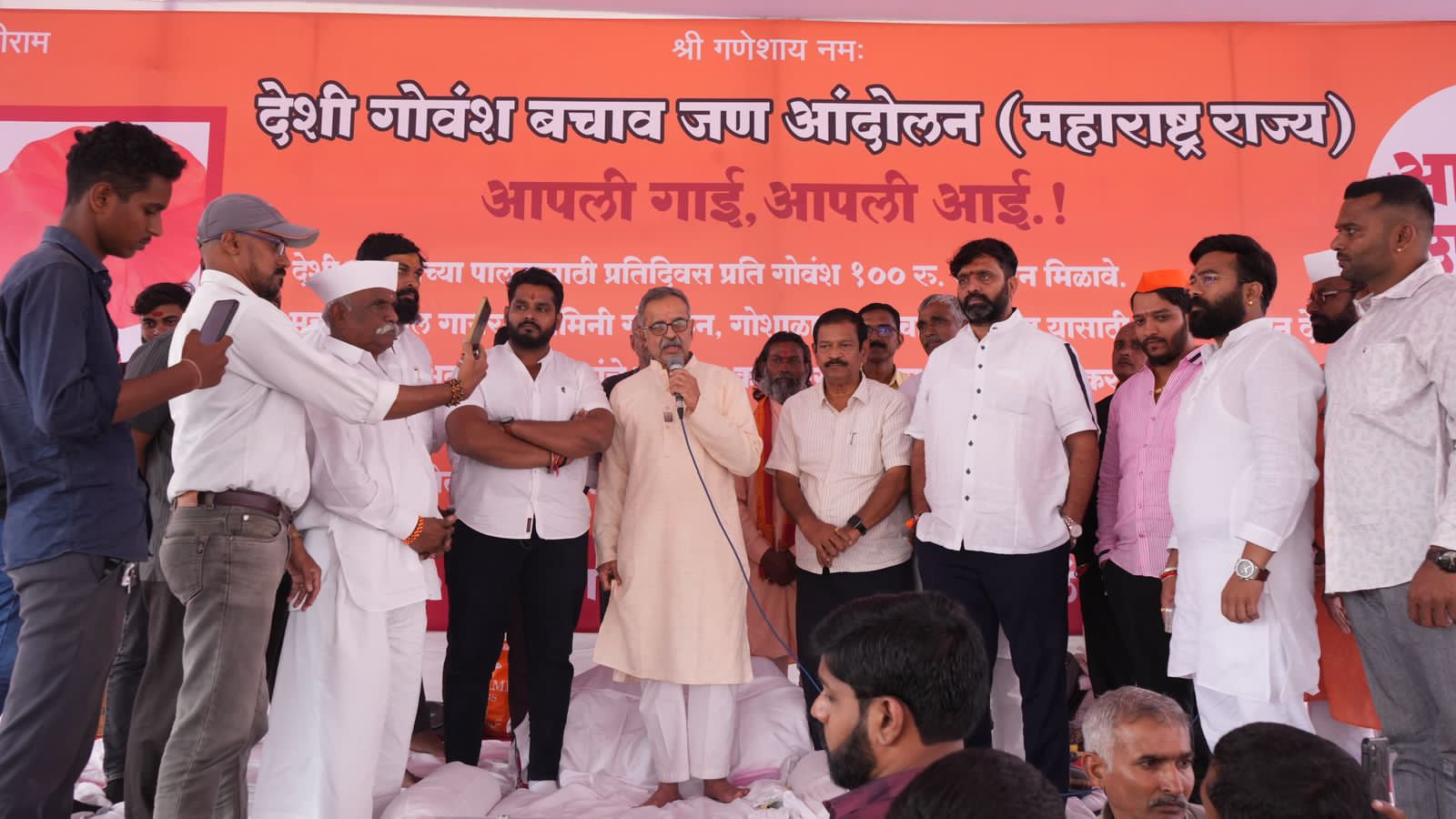 राज्यात खिल्लार गाई व खिल्लार बैल आहेत. हे सोन आपल्याकडे आहे. त्या सोन्याची जपणूक करणे संभाळ करणे सोन वाढवण्याचा प्रयत्न करणे. यासाठी आपण एकत्र आलो आहोत. माननीय उपमुख्यमंत्री देवेंद्र फडवणीस यांनी मला सांगितले की, ‘‘महेश लांडगे यांच्या समक्ष ज्या गोशाळा आहेत. त्या सर्व गोशाळांना सरसकट व गोवंशाला अनुदान देण्याचा संबंधित निर्णय घेऊ.’’ त्यामुळे आम्ही उपोषण स्थगित करीत आहोत. मात्र, प्रश्न मार्गी न लागल्यास पुन्हा आंदोलन करणार आहे.