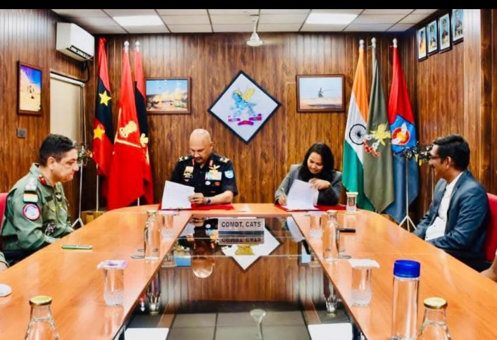पुणे : केंद्र सरकारच्या कॉम्बॅट आर्मी एव्हिएशन ट्रेनिंग स्कूल ( CAATS) ने पुण्यातील पीबीसी एरो हब रिमोट पायलट ट्रेनिंग ऑर्गनायझेशन सोबत सामंजस्य करार केला आहे. त्यानुसार डीजीसीए चे आगामी काळातील ड्रोन उड्डाणावरील प्रमाणपत्र अभ्यास प्रशिक्षण वर्ग पीबीसी मार्फत घेण्यात येणार आहेत. नुकताच कॉम्बॅट आर्मी एव्हिएशन ट्रेनिंग स्कूलचे जनरल अभिनय राय व पीबीसी च्या संचालिका अंजली चित्ते यांनी या सामंजस्य करारावर स्वाक्षऱ्या केल्या आहते. यावेळी पीबीसी एरो हब चे संचालक प्रणव चित्ते, ब्रिगेडियर शौकीन उपस्थित होते.